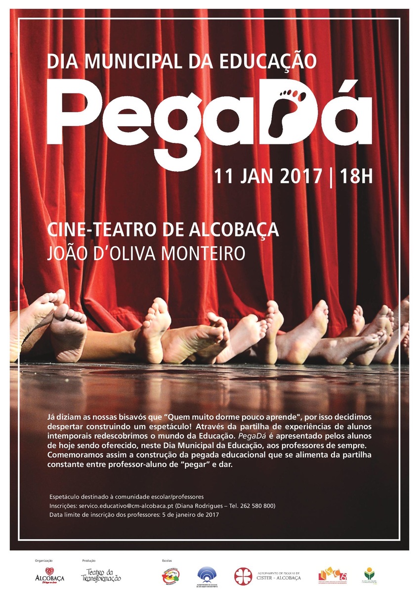 No Dia Municipal da Educação , realizado a 11 de janeiro de 2017 , o Teatro da Transformação apresentou "PegaDá" , um espetáculo especial no Cine-Teatro de Alcobaça . Criado por alunos de várias escolas do concelho, com os seus textos e ideias, este evento foi uma homenagem dos estudantes aos seus professores, destacando a importância da transmissão do conhecimento.